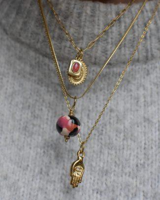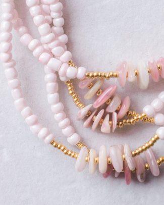 Una linea, all’orizzonte, separa l’acqua dal cielo. L’azzurro tenue di un timido cielo di fine estate si fonde con il blu di un mare tranquillo. C’è un vento leggero che sposta i colori, i pensieri e le correnti. Ci sono gioielli che sembrano pescati sui fondali marini, altri mi ricordano le stelle di una notte nel deserto con la luna piena. Il fascino delle pietre naturali incontra quello di lontane terre misteriose.