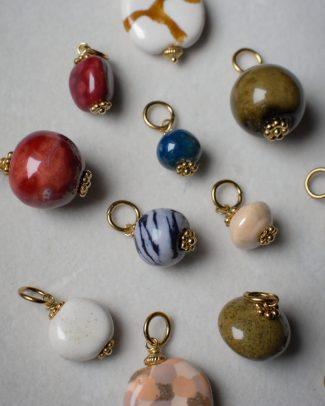 Ogni charm nasce da una perla di ceramica realizzata interamente a mano nel laboratorio Kazuri di Nairobi, dove sapienza artigianale e impegno sociale si intrecciano in un equilibrio raro avendo come obiettivo quello di offrire un impiego lavorativo a donne e madri single in condizioni sociali ed economiche di forte disagio. Sono piccole opere d’arte, modellate, colorate e cotte a mano, una ad una.