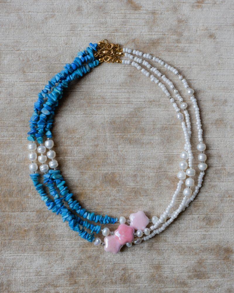 Collanina Alice. Collanina girocollo con perle di fiume, inserti turchese e perline in vetro. Lunghezza: 35 cm