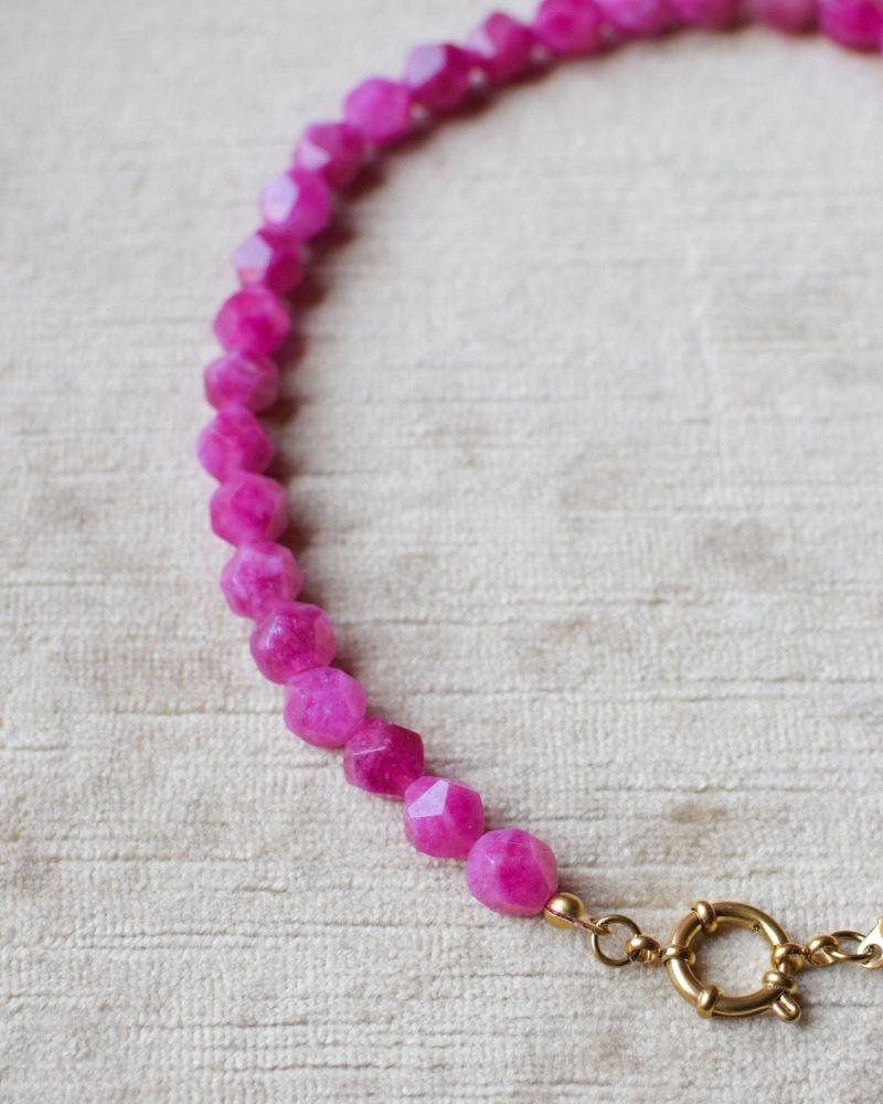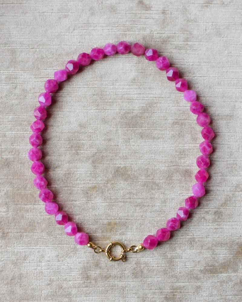 Amarena. Intensa, vibrante, quasi da mordere. Collana in tormalina dalle tonalità intense e luminose. Le pietre sfaccettate esaltano la profondità del colore, creando riflessi vivi e irregolari.