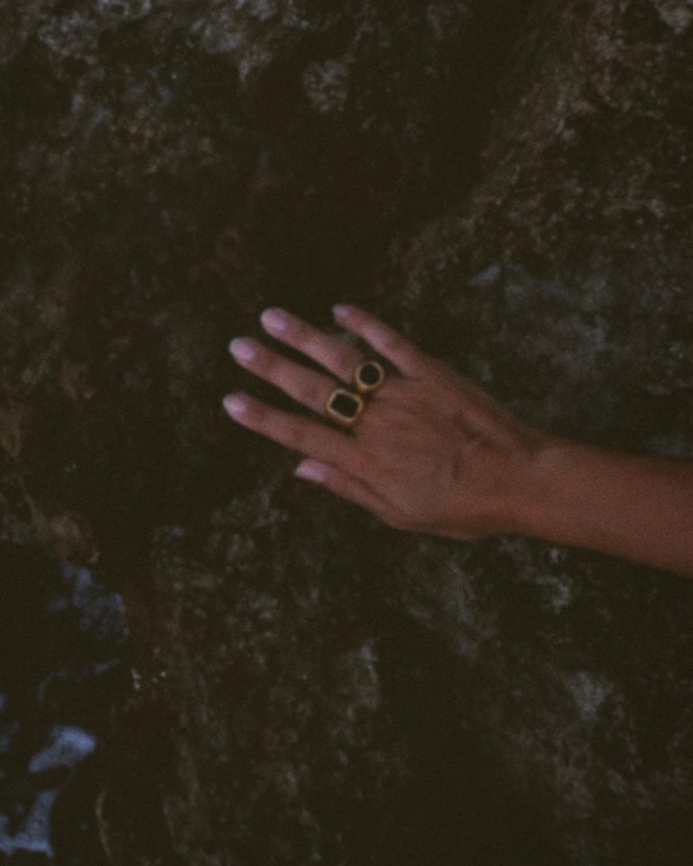 Black circle. Anello realizzato a mano in argento 925 con placcatura in oro. Pietra: Onice