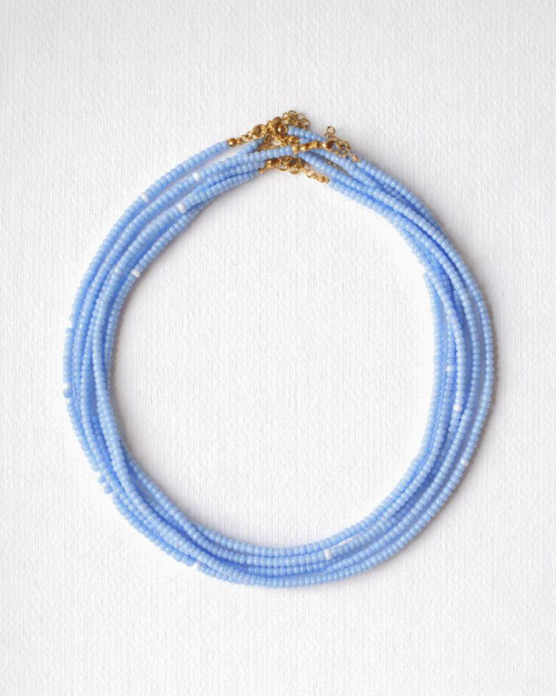 Collanine Brezze. Perline in vetro pastello colorate in pasta, processo che assicura la permanenza del colore.