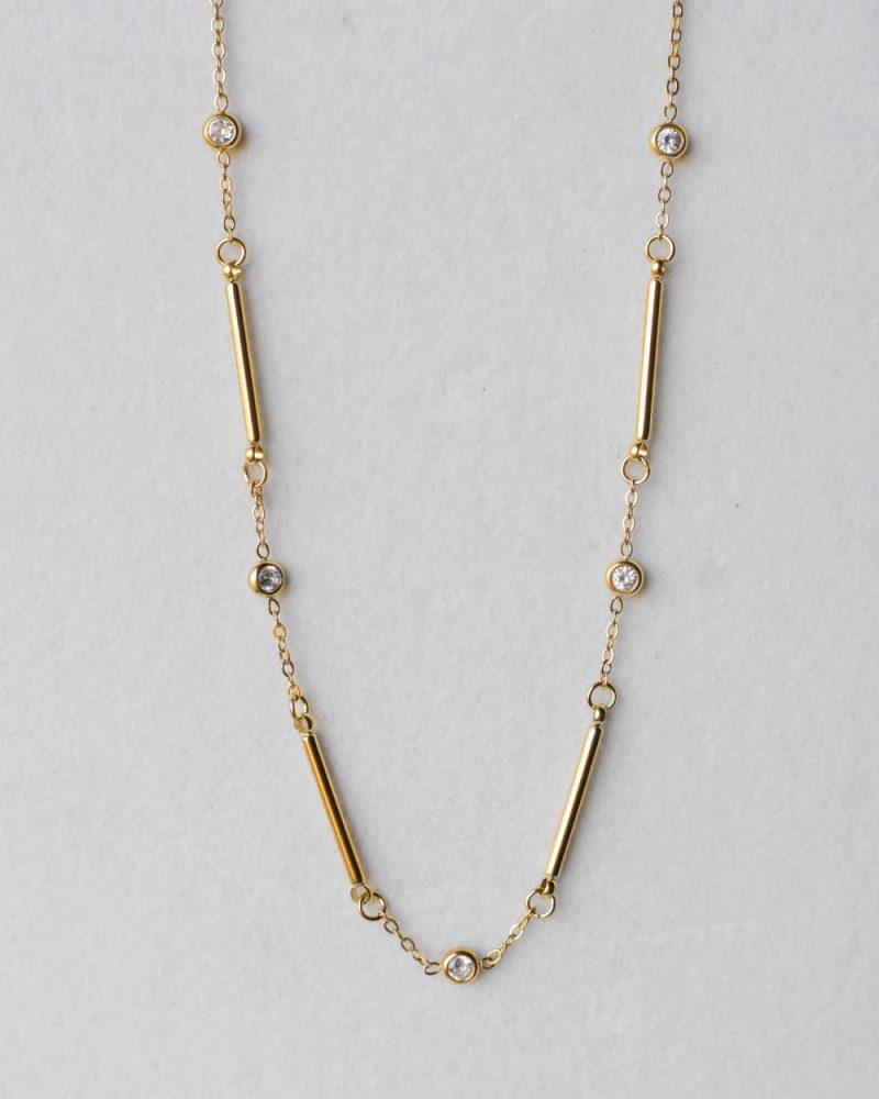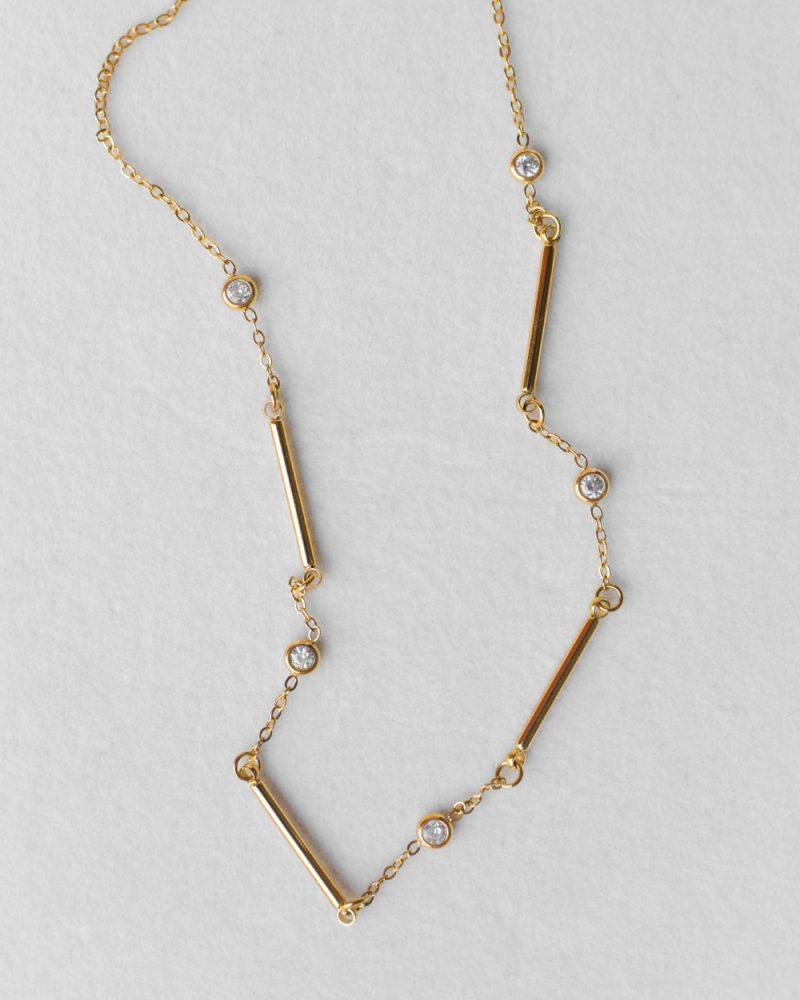 Una sequenza delicata di piccoli punti di luce che seguono il profilo del collo.