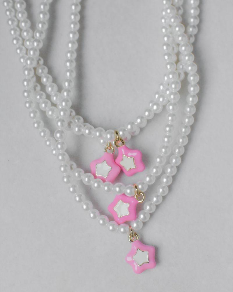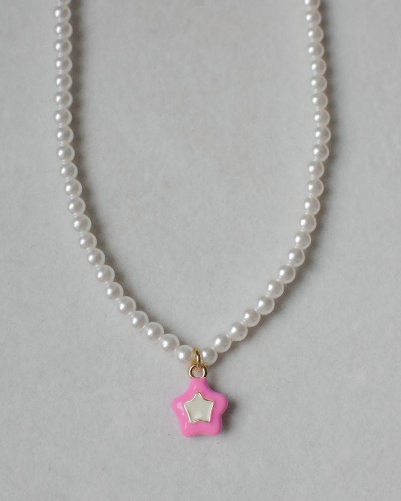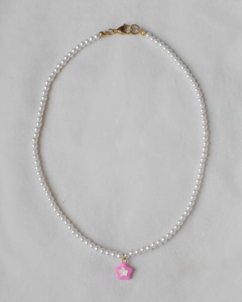 Étoaline. Le perle di Majorca incontrano una stella in ottone smaltato, dando vita a una collana che gioca tra eleganza senza tempo e leggerezza pop. Lunghezza: 43cm