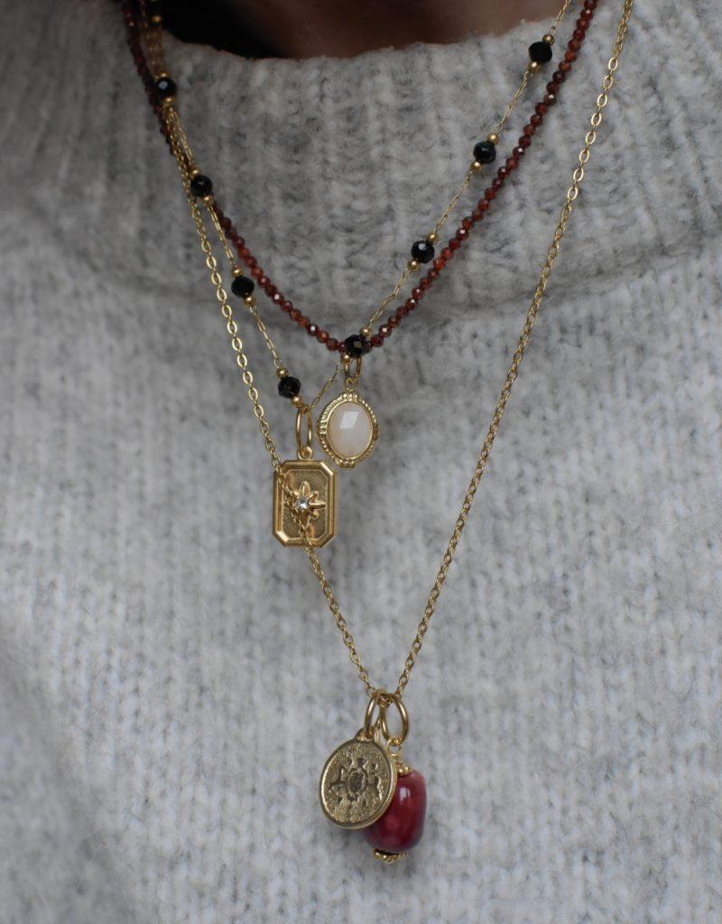 Collanina Inès. Una sottilissima catenina dal design raffinato e delicato. Perline nere sfaccettate alternate all’oro per una composizione elegante e versatile. Provala con i tuoi charm preferiti!