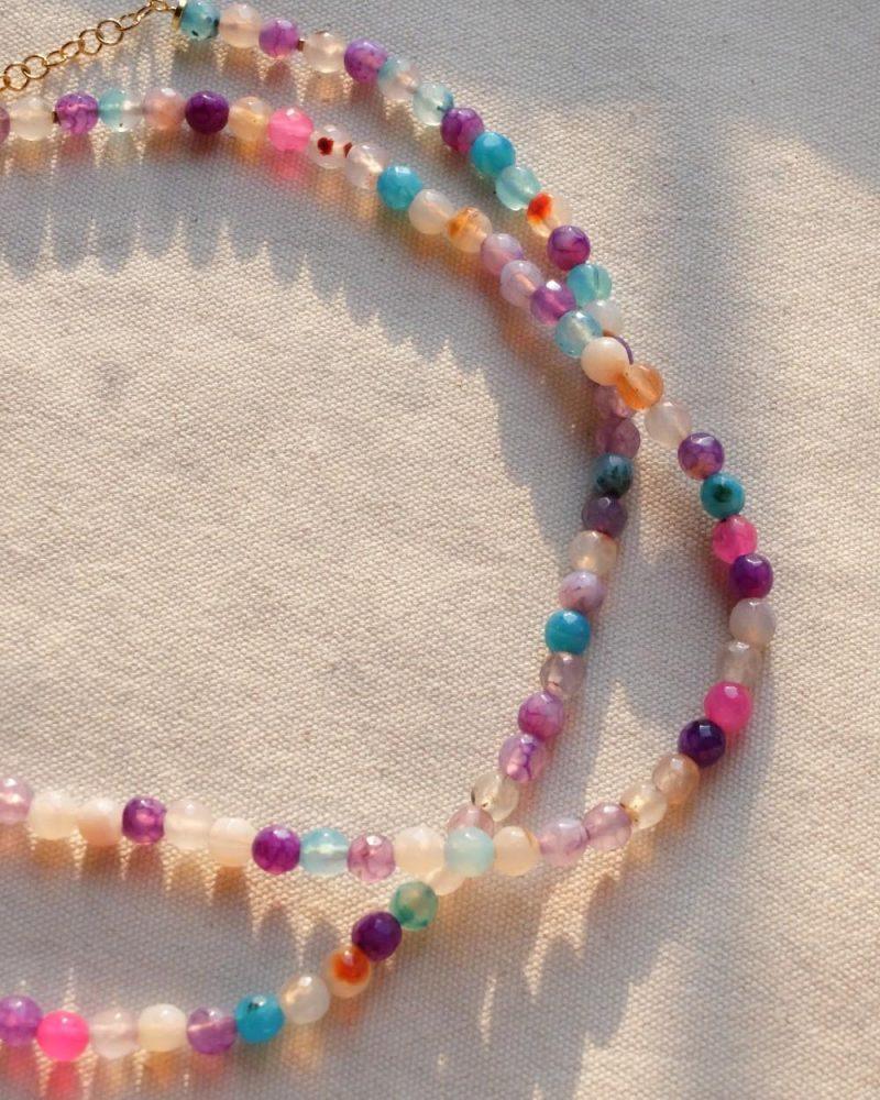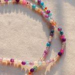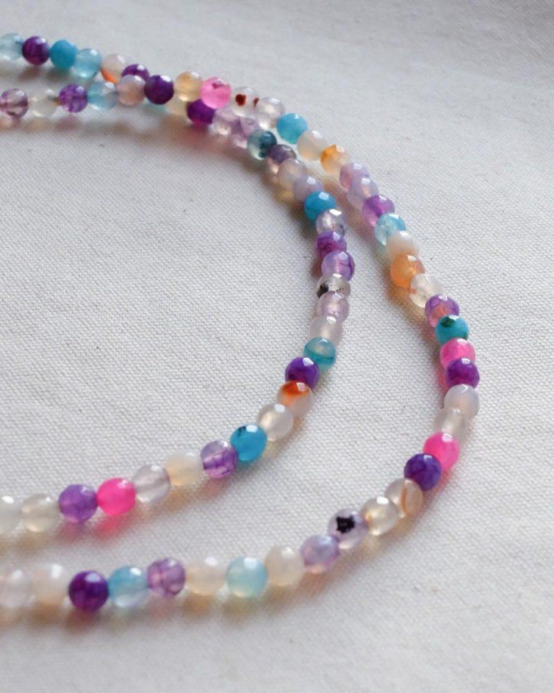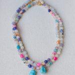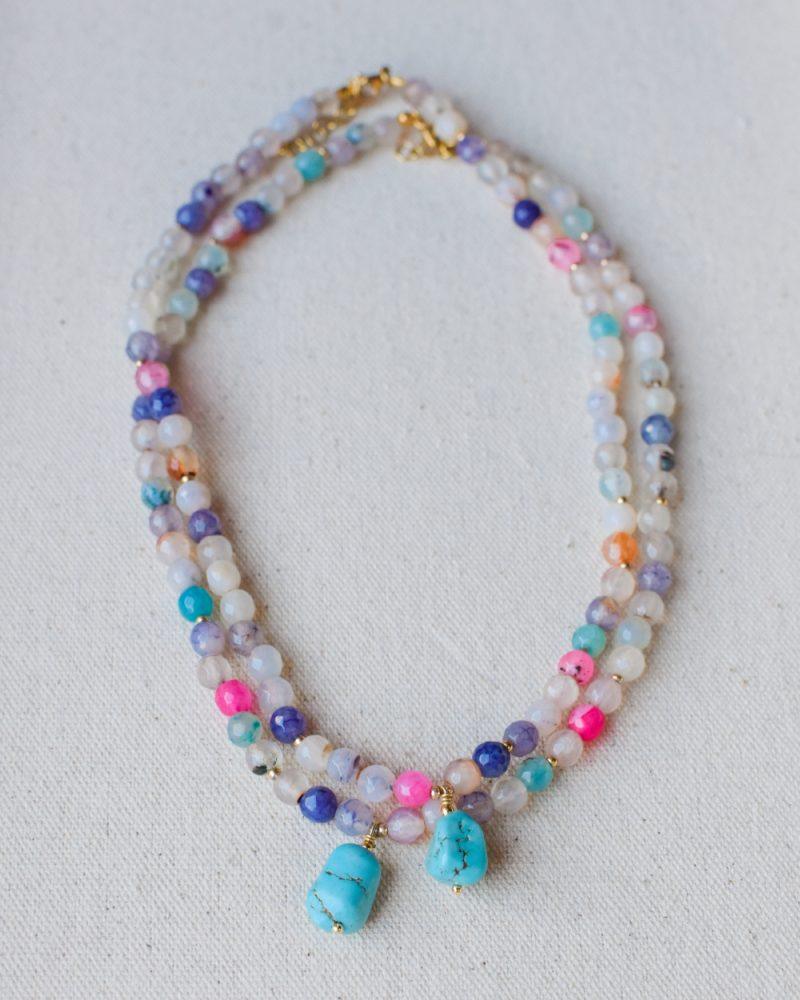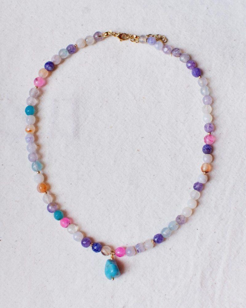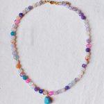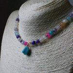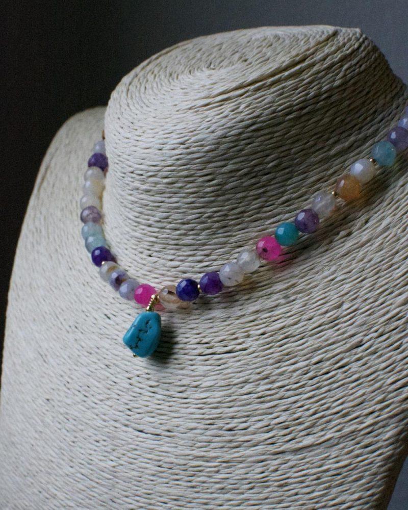 Descrizione: Collanina Kaleidos. Mix di pietre multicolore e charm in Turchese. Lunghezza: 35 + 5 cm catenella