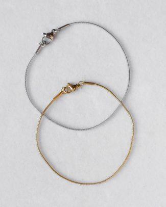 Ligamen è un segno di unione. Fili metallici intrecciati formano una struttura continua che avvolge il polso con equilibrio e movimento. Il disegno richiama l’idea di un legame che si rinnova, una connessione semplice ma essenziale.