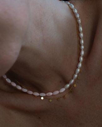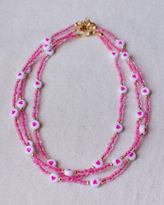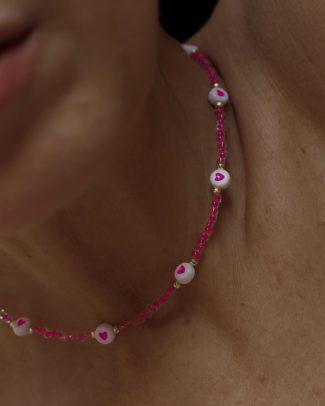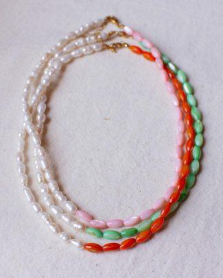 Collanina Lipari. Un tuffo nelle acque limpide delle isole Eolie: perline bianche e rosso rubino dipinte a mano, con un dettaglio centrale turchese come il mare. Fresca, leggera e perfetta per portare un tocco di estate con te ogni giorno. Lunghezza: 43 + 5 cm