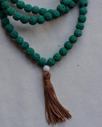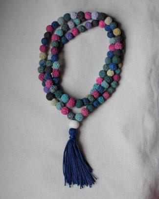 Mala è uno tra gli strumenti più diffusi e affascinanti utilizzati nella meditazione, la sua funzione è quella di tenere il conto del numero di mantra recitati durante una meditazione. La collana è composta da 108 grani (o multipli di 9) più un grano finale chiamato Guru a cui è legata una nappa (la sua lunghezza è variabile e rappresenta la nostra connessione con il divino).