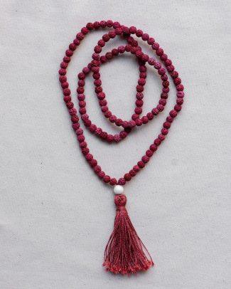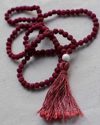 Mala è uno tra gli strumenti più diffusi e affascinanti utilizzati nella meditazione, la sua funzione è quella di tenere il conto del numero di mantra recitati durante una meditazione. La collana è composta da 108 grani (o multipli di 9) più un grano finale chiamato Guru a cui è legata una nappa (la sua lunghezza è variabile e rappresenta la nostra connessione con il divino).