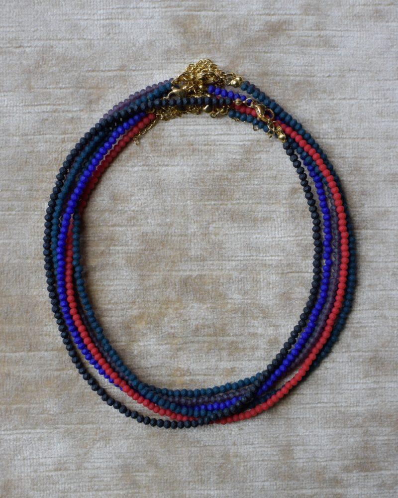 Matte — cristalli dal tocco vellutato. Ogni collana è un piccolo equilibrio di colori opachi e sensazioni, da indossare sola o intrecciata ad altre. Nascono per chi ama i dettagli discreti ma pieni di carattere — da portare come choker o avvolgere al polso, seguendo l’istinto del momento. Un gioco di sfumature, di libertà e di bellezza semplice.