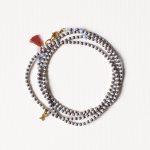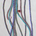Nerìa nasce dall’incontro tra azzurro polvere e metallo brunito, in un equilibrio sottile tra luce e profondità. Le micro perline creano un ritmo continuo, quasi ipnotico, mentre il dettaglio della nappina e il piccolo charm dorato interrompono la perfezione con un gesto inatteso. Lunghezza: 80cm ca.