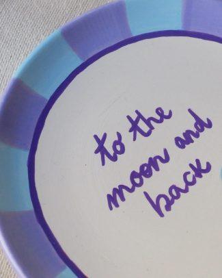 Per garantire una maggiore resistenza e duratura della decorazione consigliamo di lavare i nostri piattini a max 30° C.