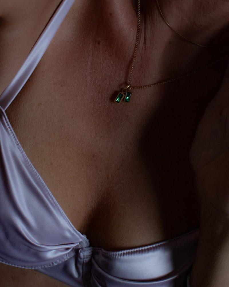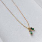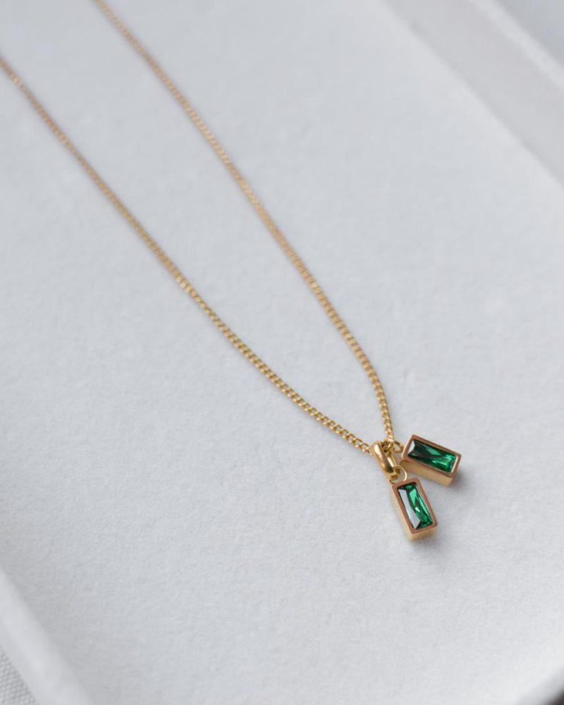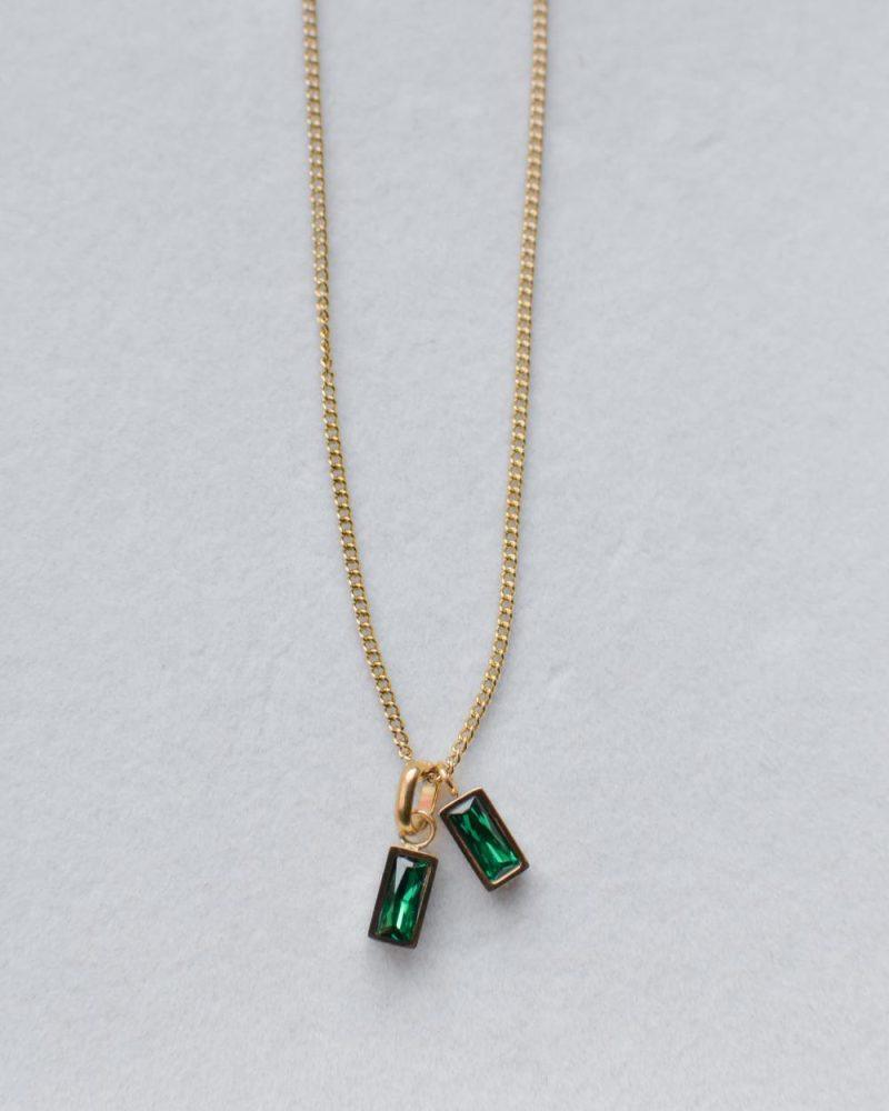 Collanina Raquel. Catenina forzatina con ciondoli zircone smeraldo. Lunghezza: 42 + 5 cm catenella