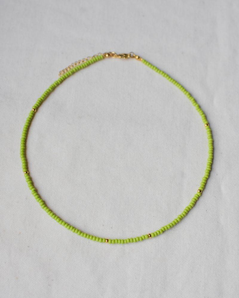 Collanina Sirena Lime.  Perline in vetro colorate in pasta, processo che assicura la permanenza del colore.