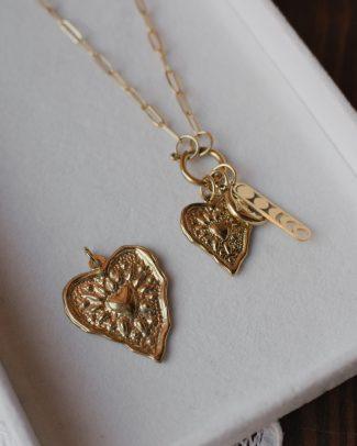 Ciondolo Mi amor. Maxi ciondolo cuore in acciaio placcato oro 18k. Size: S > 2 x 2,5 / M > 3 x 3,5