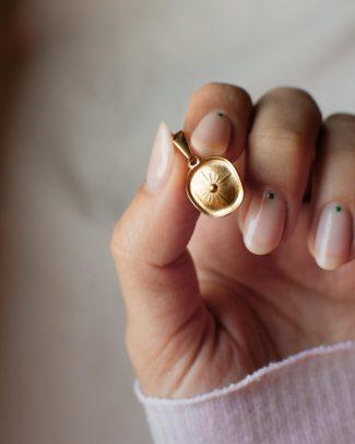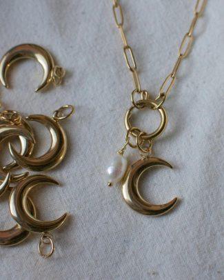 Ciondolo Luna. Simbolo d’intuizione, di purezza ma anche di ombra, di eternità e luce divina. La luna con le sue alterne fasi (crescente, piena, calante e nuova) racconta di un continuo e perpetuo movimento di rigenerazione. Dimensione: 2,5 cm